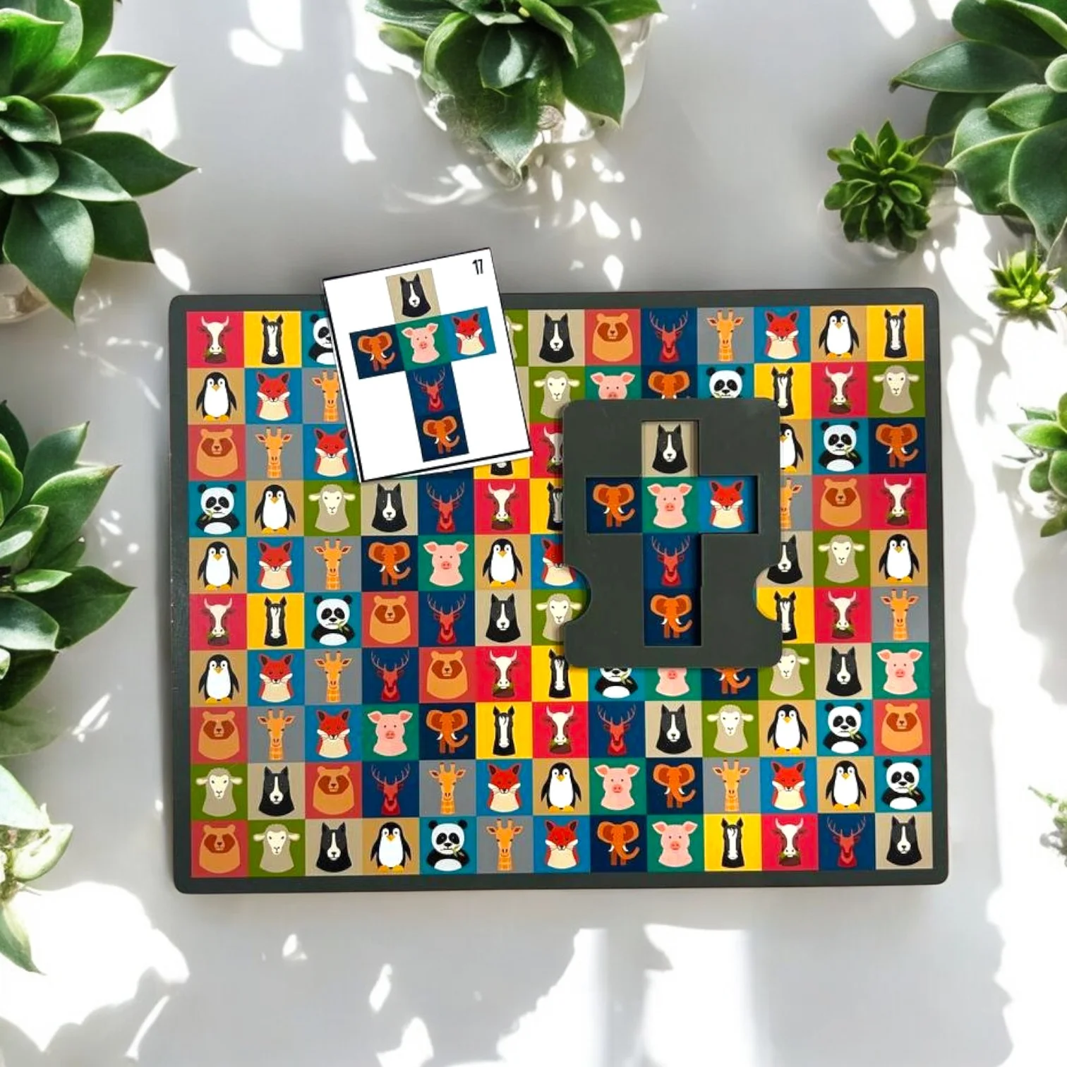 The Cross-Matching Game with Animal Patterns is a colorful and engaging puzzle designed to enhance children’s cognitive skills while delivering endless fun. Featuring vibrant animal faces arranged in a grid, players can match patterns, rows, or specific sequences based on the game rules. With 4 cards and 20 unique patterns, this game is ideal for individual or group play, fostering observation, problem-solving, and strategic thinking.