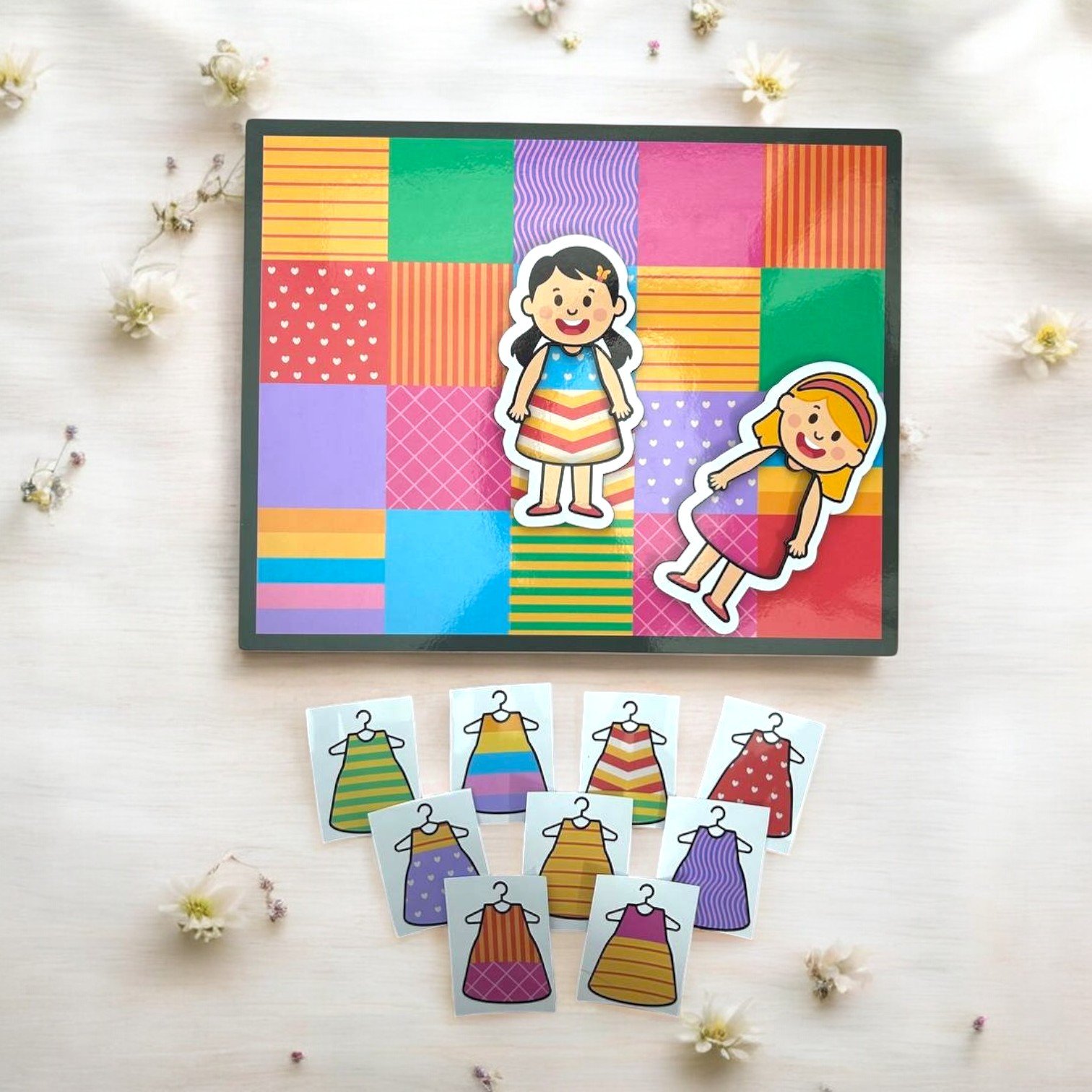 The Cross-Matching Game – Pattern Edition is an engaging and interactive activity designed to boost children’s logical thinking, creativity, and fine motor skills. With 32 vibrant pattern cards and 2 doll cutouts, this game inspires kids to match, sort, and create endless pattern combinations. Perfect for solo play or group activities, it combines fun with learning.