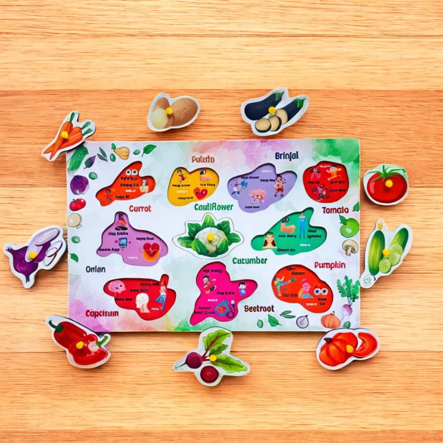 Dive into a garden of fun and discovery with our colorful Vegetable Peg Puzzle! From the crisp Cucumber to the sweet Pumpkin, this vibrant puzzle introduces kids to a variety of veggies in the most delightful way.